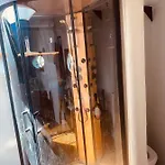 1 salle de bains équipées de toilettes séparées et d'une douche sont également équipées d'un sèche-cheveux et des draps de bain.